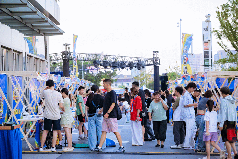 利来w66集市区里,各类摊位错落分布,宋锦、钩针DIY等工艺品的亮相以独特创意和精湛手艺成为集市区里一道亮眼的风景线。还有武术、跆拳道等俱乐部现场宣传,以及匹克球、能量饮料等展示售卖,各个摊位前人流不断,咨询和选购的市民络绎不绝,呈现出热闹的市集氛围。